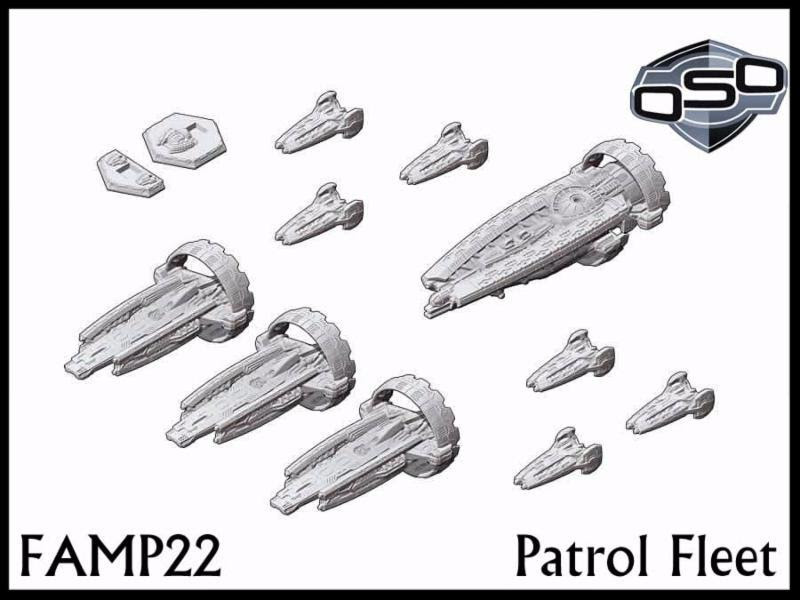 The Syndicate Traders League (STL) Patrol Fleet has been designed to be light on its feet and rapidly deployed to deal with any incursion into space controlled by this faction. The highly capable Spur Class Battlecruiser takes up the Tier 1 slot on this fleet, bringing with it plenty of firepower and flexibility. Whilst not the most devastating spaceship in the Firestorm Galaxy, few rival its all-round capability in battle. Two Wraith Gunships add more violence to this Patrol Fleet, and 5 Shadow Class Frigates round things off. The Shadows can be fielded in a maximum of 3 to a Squadron, which allows players to field 1 full strength and 1 slightly under-strength Squadron OR take 2 of the Frigates and attach them to the Spur Class.